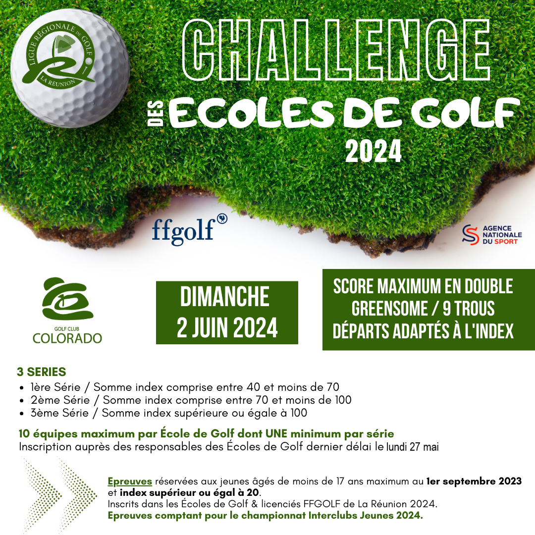Challenge des Écoles de Golf 2024 au Golf du Colorado - Dimanche 2 juin 2024 - troisième et dernier des 3 rendez-vous comptant pour le Challenge des Écoles de Golf 2024!