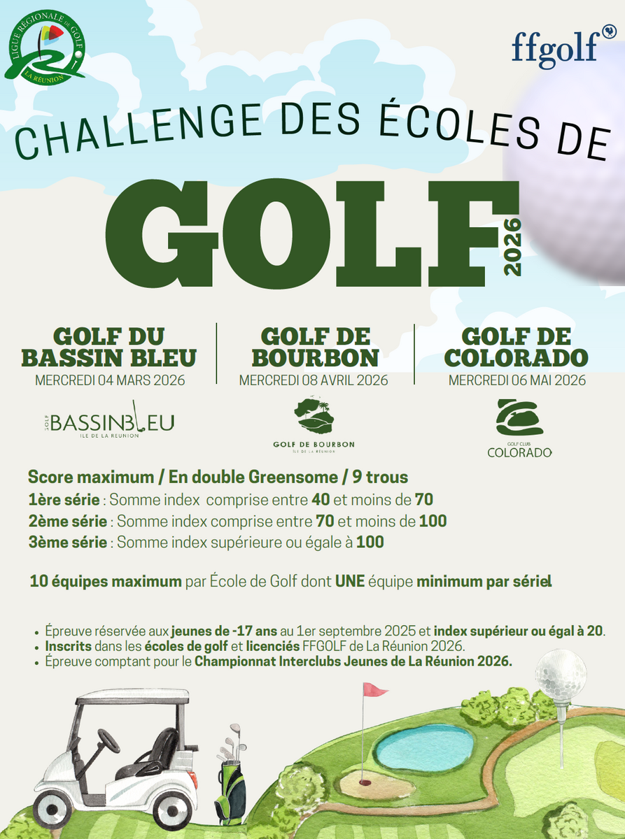 Ouvert aux joueurs licenciés 2026 de la ffgolf à La Réunion inscrits dans les Écoles de Golf de l’île, ayant un index supérieur ou égal à 20 et âgés de moins de 17 ans au 1er septembre 2025 sont éligibles, dans la