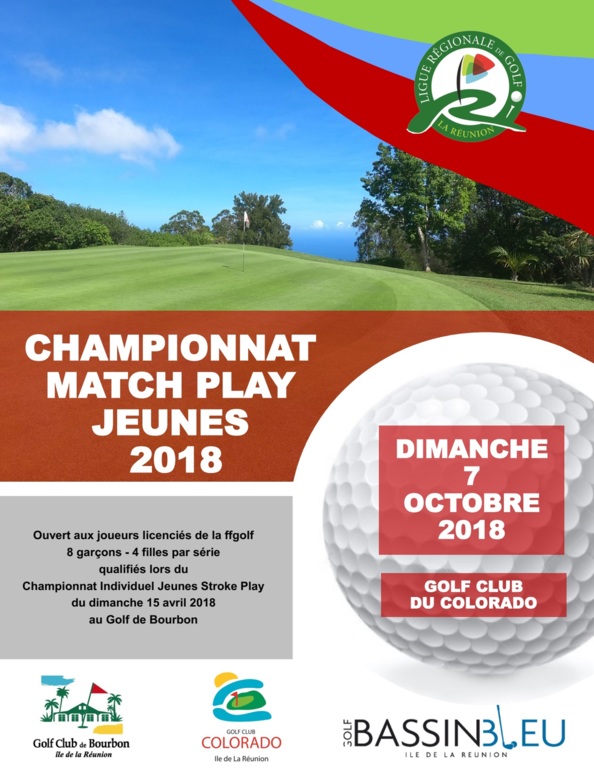 Voici les départs des " Championnats de La Réunion de Match Play Jeunes " qui se dérouleront le dimanche 7 octobre au Golf Club du Colorado !