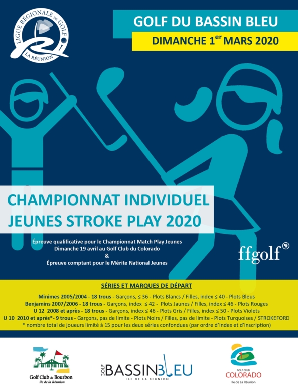 Voici les informations concernant le premier championnat Jeunes 2020 du 01/03 au Golf du Bassin Bleu, Saint-Gilles Les Hauts ! Les inscriptions se feront sur les fiches LRGR disponibles dans les trois clubs avant le lundi 24 février 2020 à 12 heures !!!