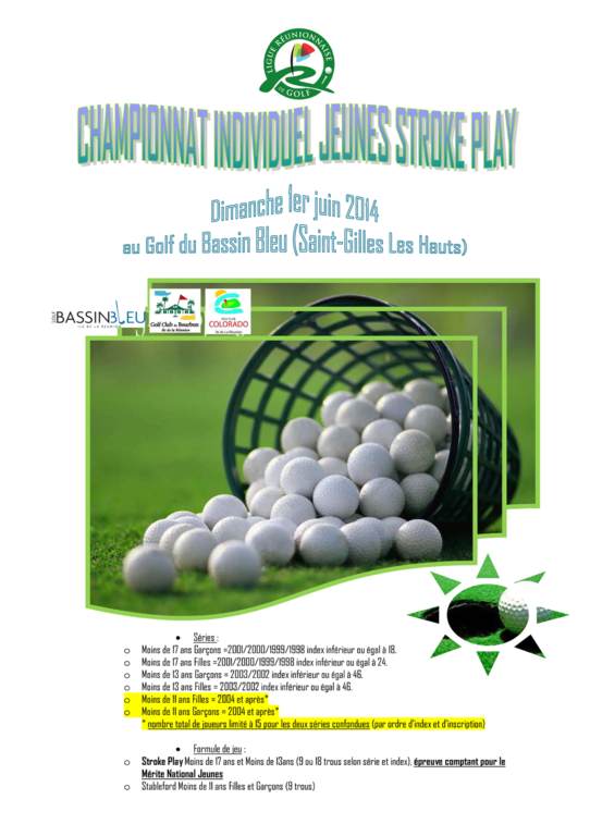 Le Championnat Individuel de Stroke Play Jeunes se disputera le 1er juin sur le parcours du Bassin Bleu.
