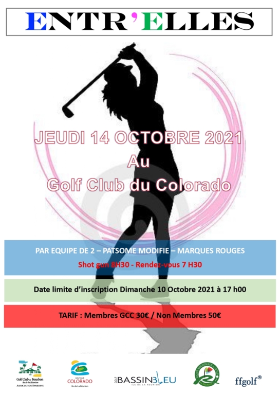 ENTR'ELLES PAR EQUIPE DE 2 - PATSOME MODIFIE - MARQUES ROUGES. SHOT GUN A 08H30. RENDEZ-VOUS AU GCC A 07H30 !!! Inscription individuelle au secrétariat de son club au plus tard le dimanche 10 octobre 2021 à 17h00 !!!