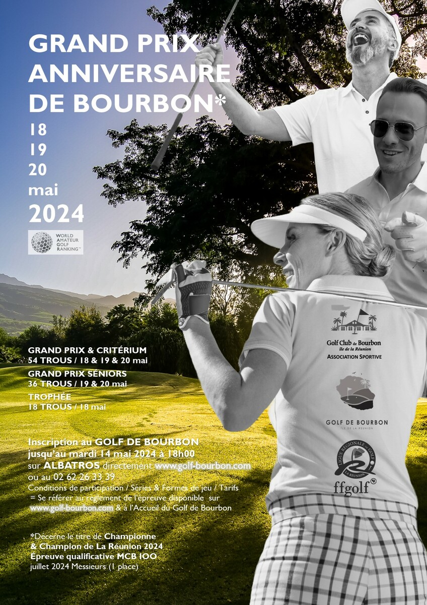 Cliquez ICI pour visualiser le règlement particulier et l’affiche du GRAND PRIX ANNIVERSAIRE DE BOURBON des 18 & 19 & 20 MAI 2024 :