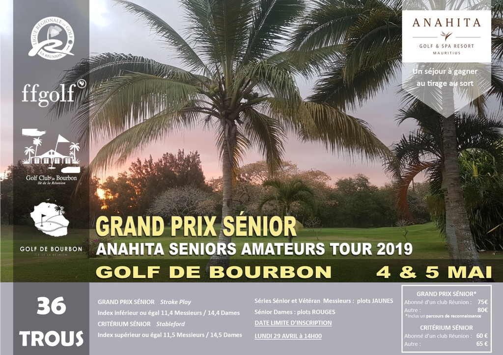 Voici les départs du samedi 04 mai du GRAND PRIX et du CRITERIUM SENIOR Dames et Messieurs au Golf de Bourbon !