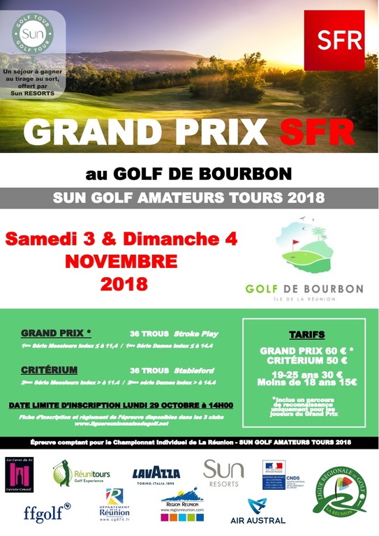 Voici les départs du Grand Prix SFR LRGR , du Critérium et du Run Pro Tour au Golf de Bourbon du samedi 3 novembre 2018 !