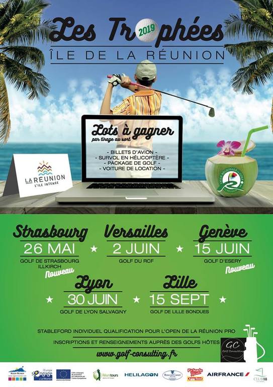 L'Ile de La Réunion Tourisme (IRT), en partenariat avec la Ligue Régionale de Golf de La Réunion, Air France, l'hôtel Boucan Canot, Hélilagon, Asiafood et Réunitours, organise pour la 4e année consécutive, les " Trophées Golf Ile de La Réunion " en métropole. Pour cette édition 2019, environ 5000 golfeurs seront informés de ces compétitions et environ 600 pourront jouer les 5 compétitions mettant en avant La Réunion !!!