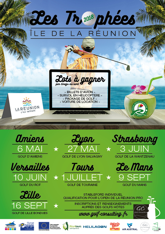 L'Ile de La Réunion Tourisme en partenariat avec la Ligue Régionale de Golf de La Réunion, Réunitours, Air Austral, Hélilagon, Asia Food organise la 3ème édition des " Trophées Golf Ile de La Réunion " en métropole.