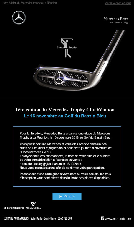 Pour la première fois, Mercedes Benz organise une étape du " Mercedes Trophy " à La Réunion, le vendredi 16 novembre 2018 au Golf du Bassin Bleu (Saint-Gilles Les Hauts) !!!