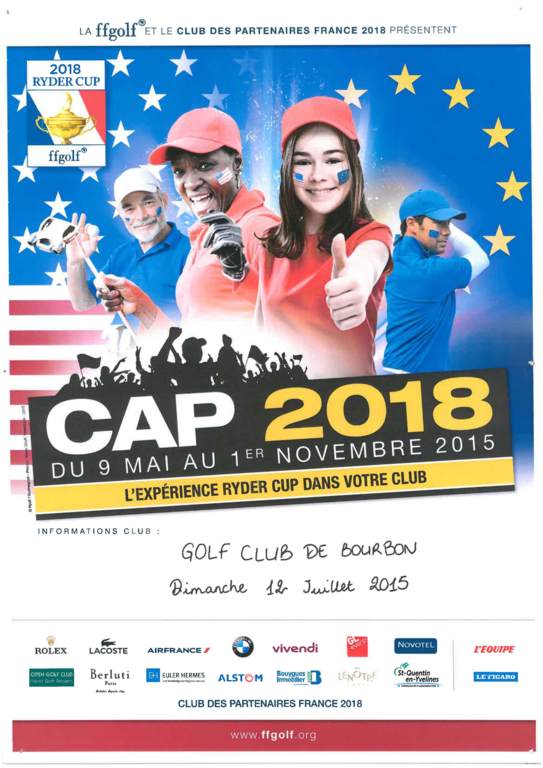Dans le cadre de la préparation de la Ryder Cup et pour faire monter l'intérêt pour cette rencontre historique pour le golf français, la FFG et le club de ses partenaires invite tous les clubs à organiser une compétition baptisée "Cap 2018", et cela depuis début mai jusqu'au 1er novembre.