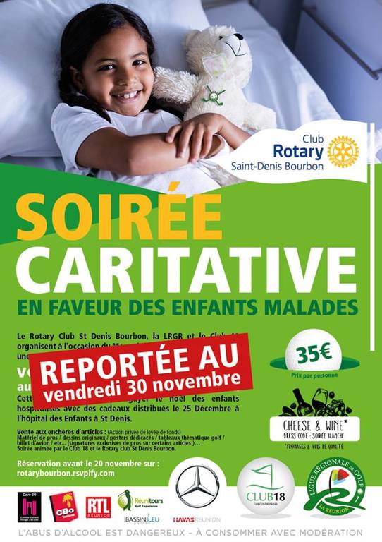 SOIREE CARITATIVE EN FAVEUR DES ENFANTS MALADES REPORTEE AU VENDREDI 30 NOVEMBRE 2018 !!!