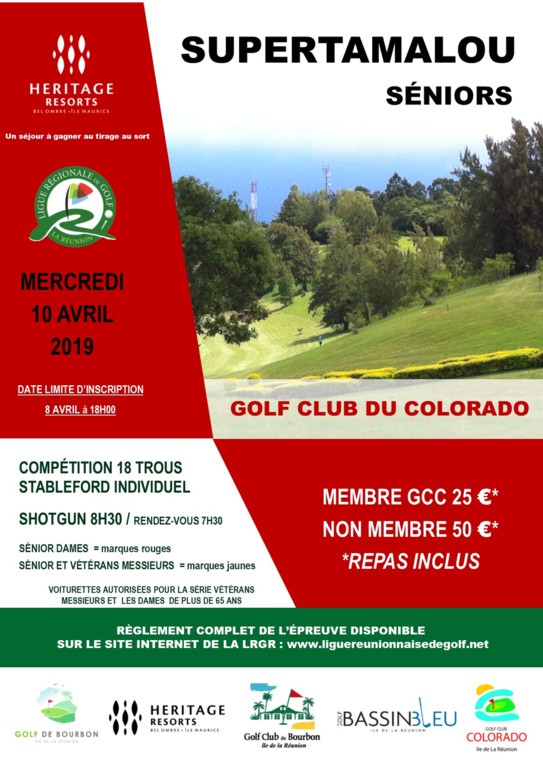 SUPERTAMALOU SÉNIORS au Golf Club du Colorado ; MERCREDI 10 AVRIL 2019 !!! DATE LIMITE D’INSCRIPTION ; 8 AVRIL à 18H00 !!!