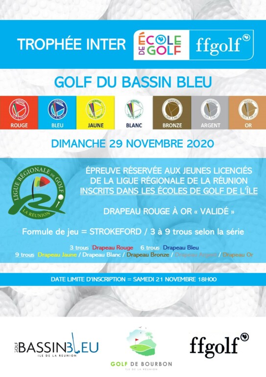 Les résultats (OR / ARGENT / BRONZE / BLANC / JAUNE / BLEU / ROUGE) du Trophée Inter Ecole de Golf du dimanche 29 novembre au Golf du Bassin Bleu sont à télécharger ICI